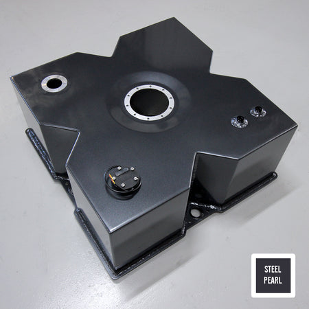 We figured the modern street machine deserves more than a square box - so we gave the fuel cell a redesign and a bit of a glow-up. Designed with both form and function in mind, it employs a unique X-shaped baffle and fuel control design to not only keep fuel around the pump pick up area under acceleration, but to actually force more fuel into that area under those conditions.