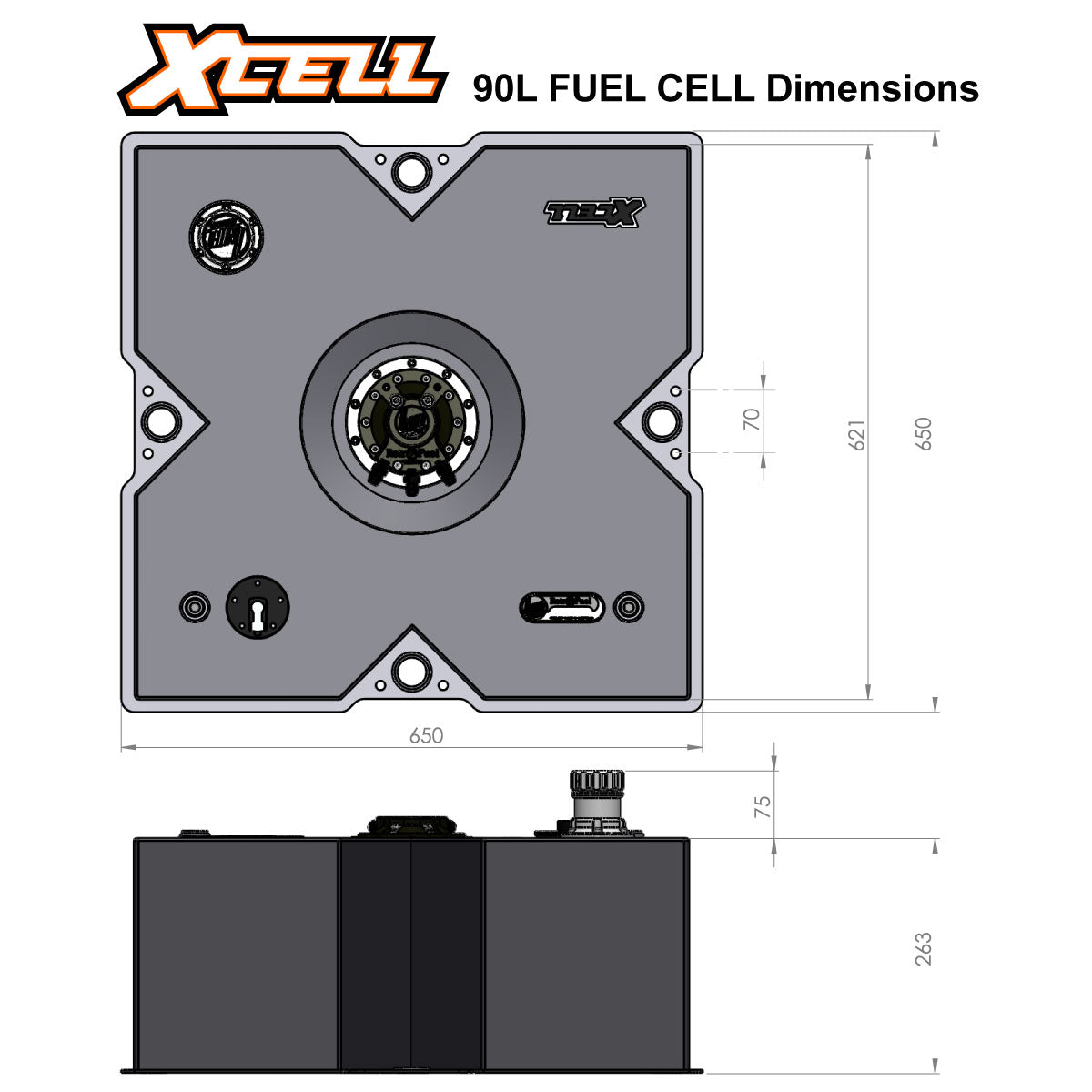 The X-CELL Universal fuel cell is here! Perfect for high horsepower street machines, drag cars, burnout cars and offroad vehicles.
